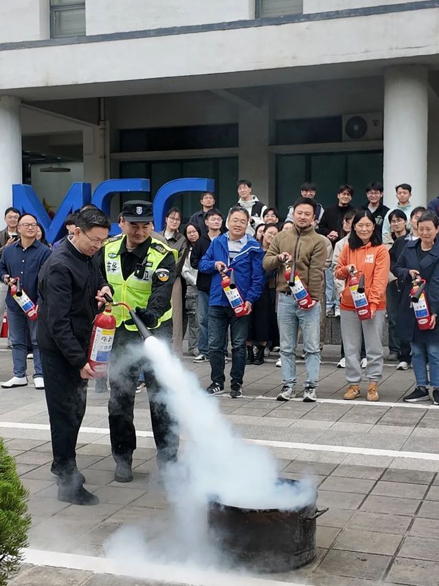 灭火实操环节同样精彩纷呈。保卫处老师现场演示了灭火器的正确使用方法,“一提、二拔、三握、四压”的操作口诀深入人心。师生们踊跃参与,亲自操作灭火器,迅速扑灭火源。通过亲身体验,大家不仅掌握了灭火技能,也增强了应对火情的信心。